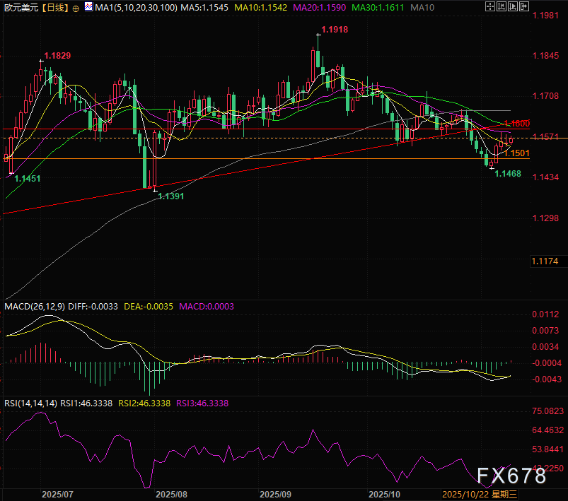美国政府停摆有望终结的消息,推动美元兑一篮子主要货币小幅走高,但同时也提振了市场情绪,为欧元等风险关联资产提供支撑,使得欧元兑美元维持横盘整理后逐步上行的格局。