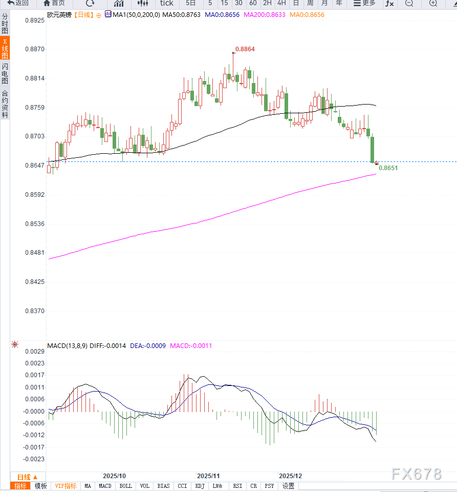利率市场普遍预计,英国央行在上半年至少还有一次降息空间,但年内第二次降息的概率尚未完全定价,这使得英镑相对其他主要货币表现更具韧性,从而限制了欧元兑英镑的反弹幅度。